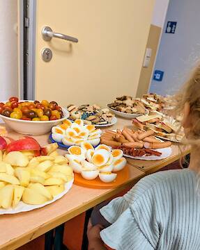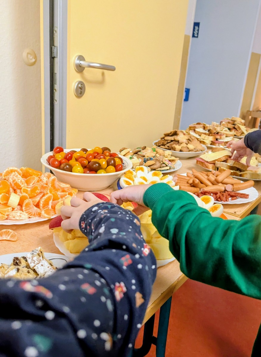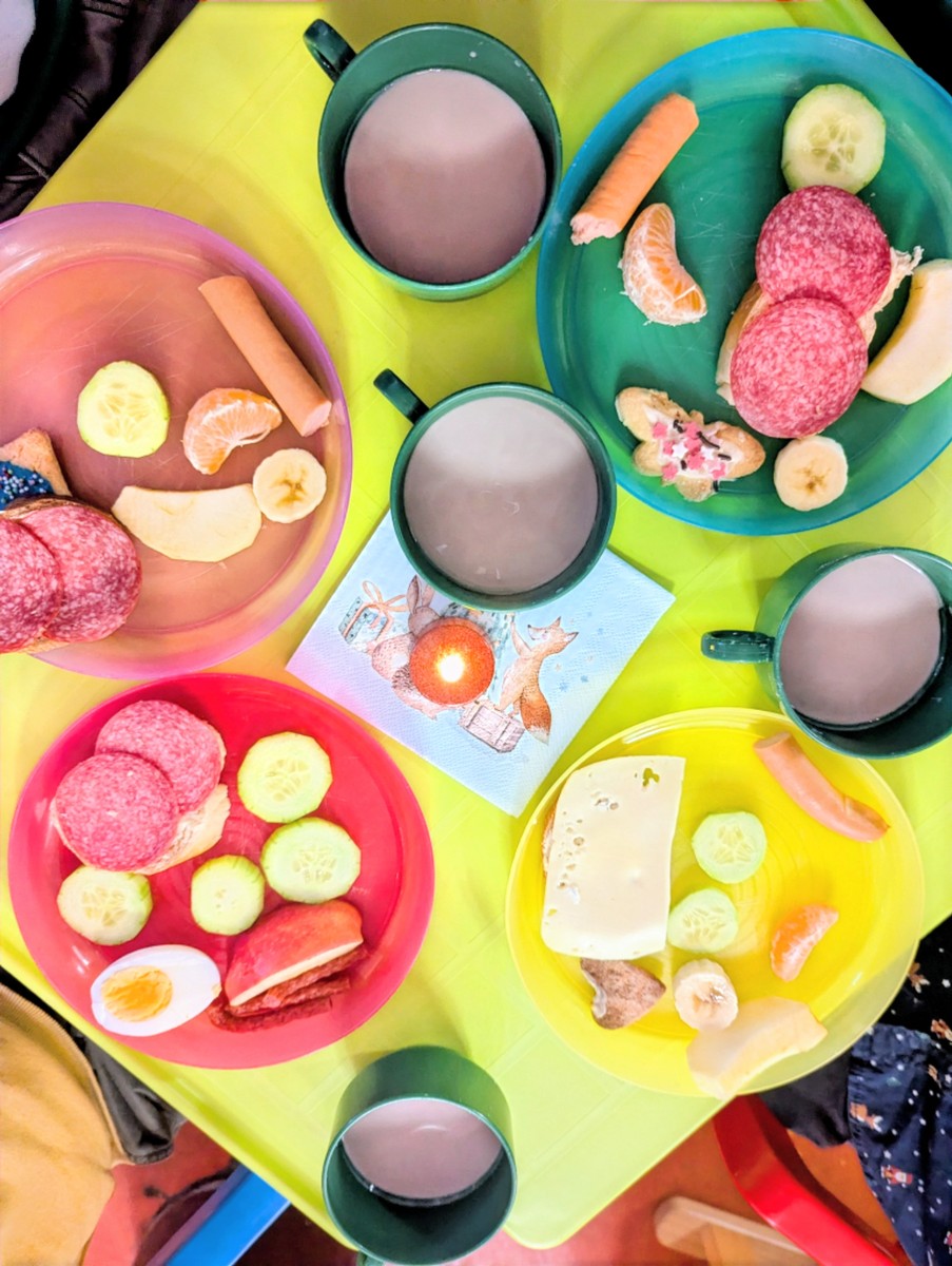 Wir haben im Kindergarten eine Weihnachtsfeier mit einem gemeinsamen Frühstück und Geschenken gefeiert. Unsere Krippen- und Kita-Kinder wurden mit vielen großen und kleinen Sportgeräten für die Turnhalle überrascht. So dürfen wir z.B. mit neuen Matten und einem Kasten im neuen Jahr Sport machen. In allen Gruppen wurde es auch kreativ und es wurden tolle Geschenke und Kunstwerke gebastelt.